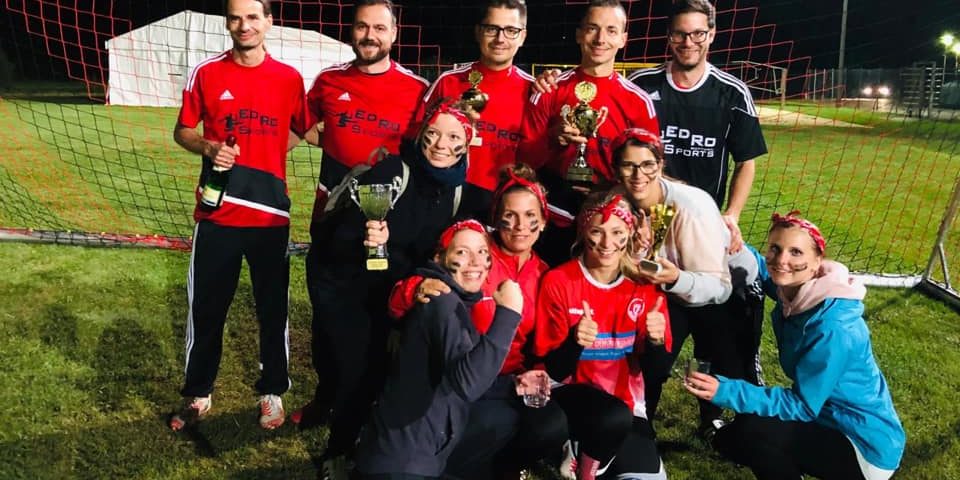 Bei den Herren gab es 4 Gruppen a 7 Mannschaften. Die Vorrunde wurde auf drei Tore ausgespielt und bereits hier gab es die eine oder andere Überraschung, sodass sich so mancher vermeintliche Favorit schwer tat. Die Zuschauer bekamen jedenfalls viele unterhaltsame Spiele zu sehen und ab 17 Uhr gab es dann noch etwas auf die Ohren. Als besonderes Highlight haben wir für dieses Jahr die Band „Treeman Brothers“ angeheuert, die für eine tolle Stimmung auf dem Fest sorgte. Nach den Achtelfinalspielen begann die „Trostrunde“, in der die Platzierungen ausgespielt wurden. Spannend wurde es wieder ab dem Viertelfinale. In diesem konnten sich die Teams von FC Lieberampool, dem Tennis Club, dem Mink Clan und von SC BGB durchsetzen und den Einzug ins Halbfinale klar machen. Diese boten große Spannung. Letztlich hatten die Mannschaften von FC Lieberampool und dem Mink Clan etwas mehr Glück und zogen ins Finale ein. Dort erwies sich der Mink Clan als nervenstärker und konnte somit das Turnier und den Wanderpokal gewinnen.